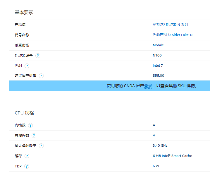 N100是英特尔旗下12代Alder Lake-N系列的一款低功耗宽性能的处理器,该系列还有N200、N300、N305、N97、N50、X7211E、X7213E、X7425E等等,Alder Lake-N系列N100这款处理器为7nm光刻工艺,具有四核四线程性能,待机功耗仅6W,主频低至0.8G,但它睿频最高确可以达到3.4G,能同时兼顾功耗和性能。